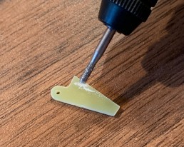 Ich beginne mit dem einkleben der beiliegenden Ruderhörner in die Fläche. Dazu werden die Klebeflächen auf beiden Seiten aufgeraut, in meinem Fall mit einem Diamant-Schleifstift.
