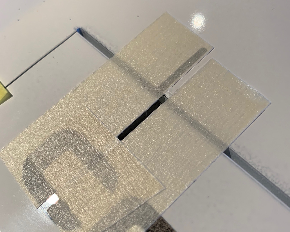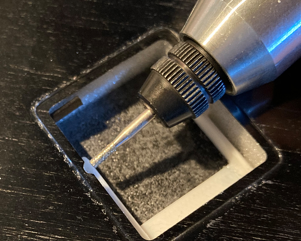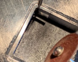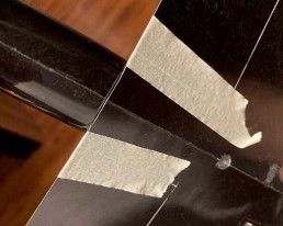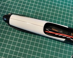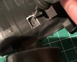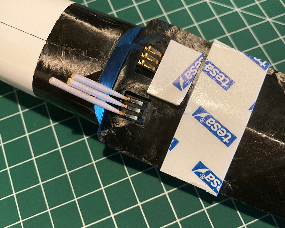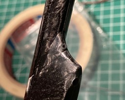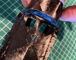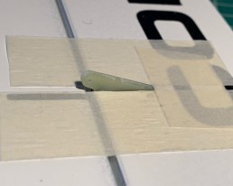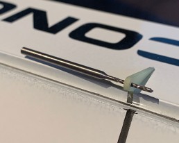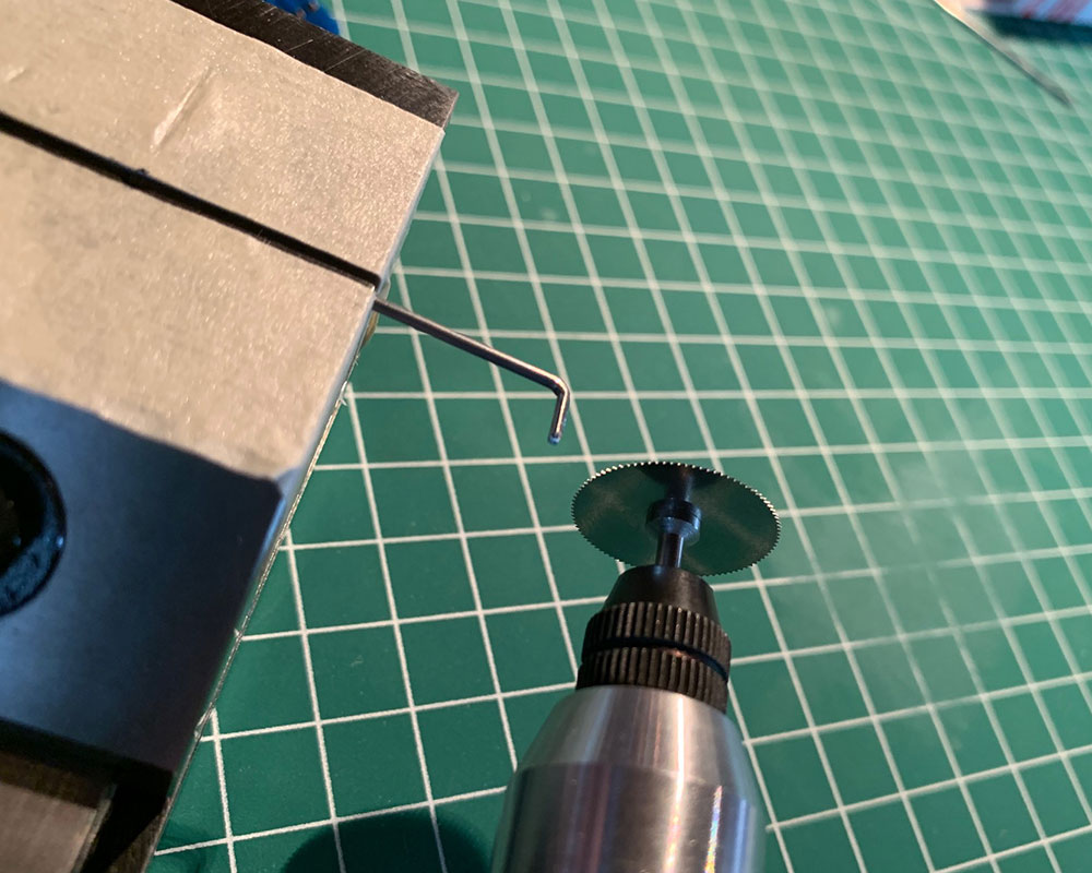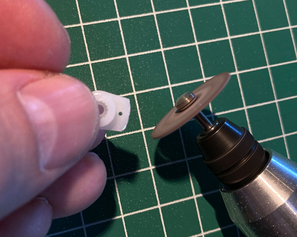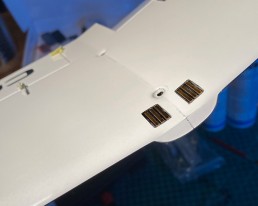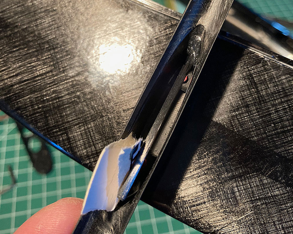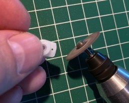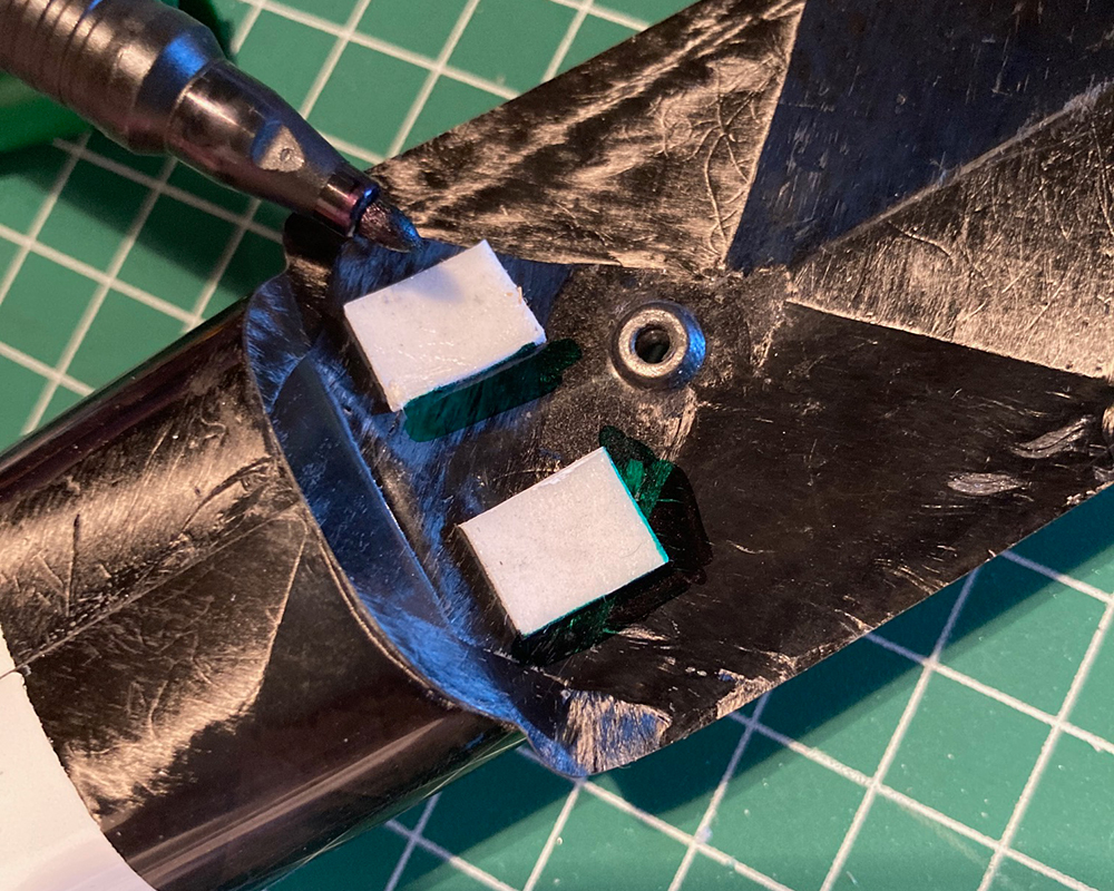 Ich beginne mit dem einkleben der beiliegenden Ruderhörner in die Fläche. Dazu werden die Klebeflächen auf beiden Seiten aufgeraut, in meinem Fall mit einem Diamant-Schleifstift.